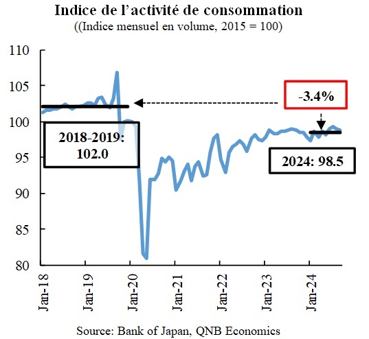 Depuis le milieu de l’année, la croissance des salaires réels a commencé à se redresser, portée par l’accord shunto – les négociations annuelles entre syndicats et dirigeants d’entreprises – qui a permis une augmentation moyenne des salaires de 5,6 %, la plus importante en 33 ans. Au troisième trimestre de cette année, la consommation a enregistré une hausse inattendue de 3,6 % en rythme annuel, la plus forte depuis la reprise post-pandémie.