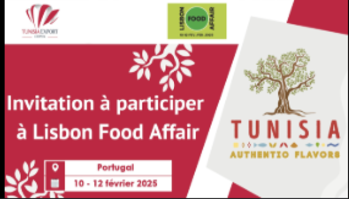 Un stand dédiée à l’industrie agroalimentaire sera mis à la disposition des sociétés tunisiennes opérant dans le secteur de l’agroalimentaire et souhaitant participer au salon « Lisbon Food Affair » prévu du 10 au 12 février, à Lisbonne, au Portugal.