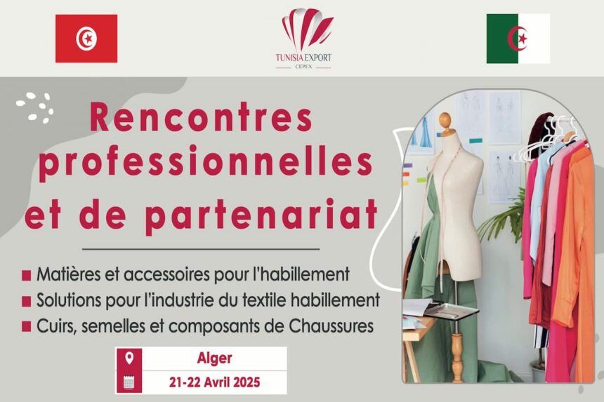 Des rencontres professionnelles et de partenariat au profit des secteurs Textile et Habillement et Cuir et Chaussures seront organisées, par le Centre de Promotion des Exportations (CEPEX), les 21 et 22 avril 2025 à Alger et ce, en marge de la 8ème édition du Salon TexStyle Expo.