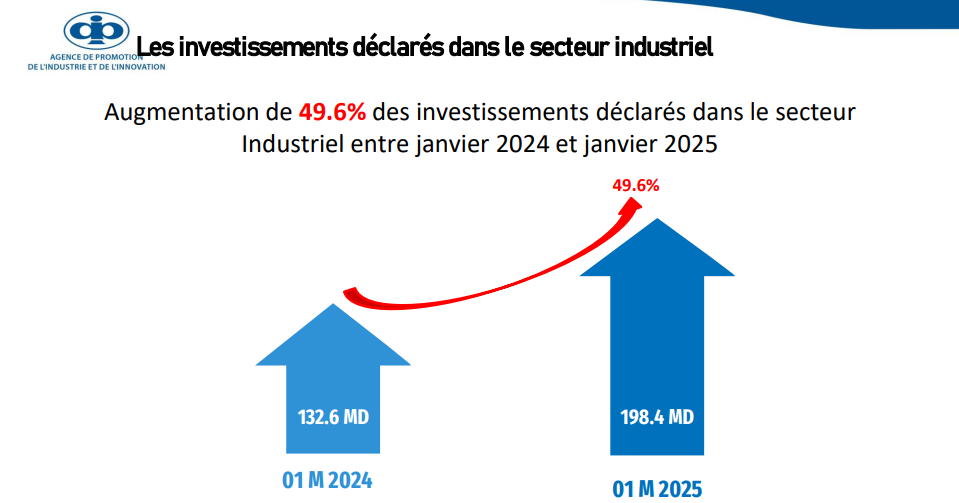 En Tunisie, les investissements déclarés dans le secteur industriel ont connu une augmentation significative entre janvier 2024 et janvier 2025, avec une hausse de 49,6%. C’est ce que relève le rapport de l’APII (Agence de Promotion de l’Industrie et de l’Innovation).