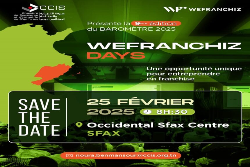 En partenariat avec WeFranchiz, la Chambre de Commerce et d’Industrie de Sfax (CCI Sfax), organise WeFranchiz Days. Cet évènement de la plus grande envergure se tiendra le 25 février 2025 à l’hôtel Occidental Sfax Centre.