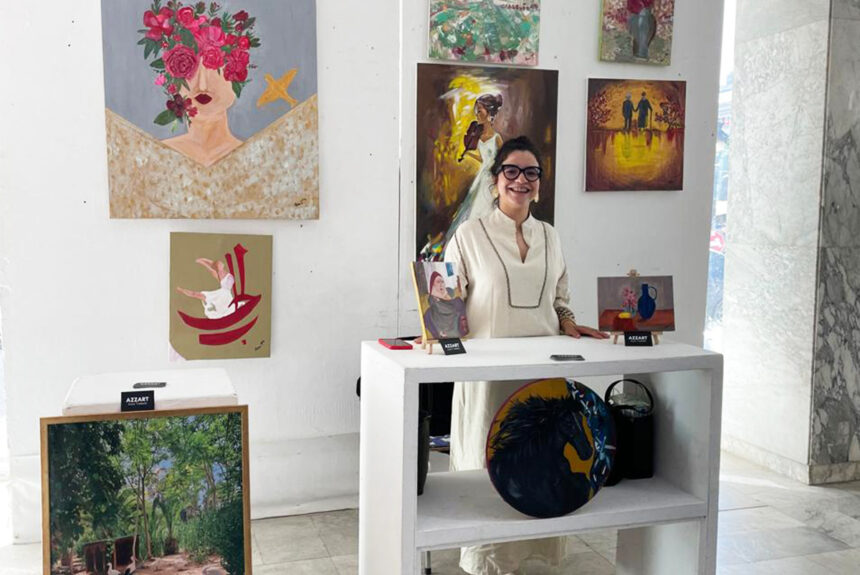 Azza est autodidacte et n’a pas suivi de formation en peinture. Cependant, dès son enfance, elle a pris le pinceau en main, encouragée par des parents qui ont su reconnaître son talent. De plus, la peinture et l’art occupent une place centrale dans sa famille, plusieurs de ses membres pratiquant cet art sous différentes formes et avec des techniques variées. Bien qu’elle ne soit pas formée académiquement à la peinture, notre invitée maîtrise un certain nombre de techniques avec une aisance déconcertante.
