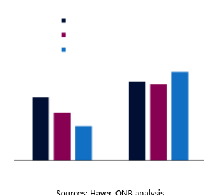 Deuxièmement, la Banque centrale européenne (BCE) a amorcé son cycle d’assouplissement en juin 2024 et devrait poursuivre ses baisses de taux cette année. Cette décision fait suite à la normalisation réussie de l’inflation et des anticipations d’inflation, qui se situent actuellement autour de l’objectif de 2 % fixé par la BCE. Le taux d’intérêt de la facilité de dépôt de référence a déjà été réduit de 150 points de base (pb), passant d’un pic de 4 %, et le marché anticipe encore 50 pb de baisses d’ici la fin de l’année, portant le taux de référence à 2 %. À terme, cela devrait assouplir les conditions financières, réduire le coût du crédit et favoriser à la fois l’investissement et la consommation. Ainsi, la politique monétaire devrait également soutenir la croissance régionale.