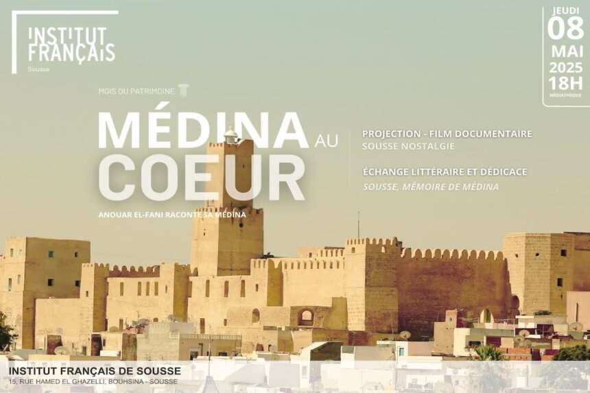 Dans le cadre de la 34e édition du Mois du patrimoine (18 avril-18 mai), l’Institut français de Sousse met à l’honneur le patrimoine de la « Perle du Sahel » et propose, à travers une rencontre intitulée « Médina au Coeur », un véritable voyage dans le temps, avec la projection, le 8 mai 2025, du court métrage documentaire « Sousse Nostalgie » (1993) réalisé par Mounir Baaziz, d’après un scénario de Anouar Al-Fani.
