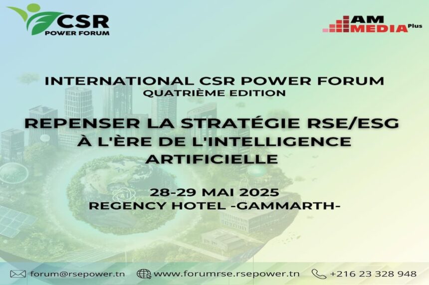 La quatrième édition du CSR Power Forum se tiendra les 28 et 29 mai à Gammarth, autour du thème : « Repenser la stratégie RSE/ESG à l’ère de l’intelligence artificielle ».