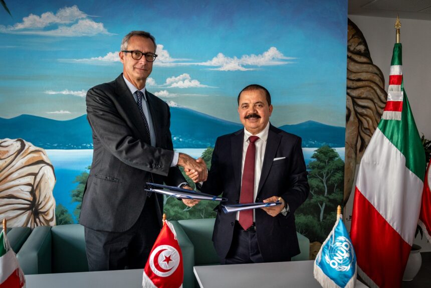 Cet accord, d’un montant de 6,5 millions d’euros entièrement financé par le gouvernement italien, a été paraphé par Alessandro Prunas, ambassadeur d’Italie en Tunisie, et Lassaad Ben Hassine, représentant de l’ONUDI en Tunisie. La cérémonie, organisée au siège régional de l’Agence italienne de coopération (AICS), s’est tenue en présence d’Isabella Lucaferri, directrice de l’AICS, ainsi que de représentants des ministères de l’Économie et de l’Emploi.