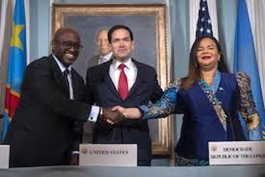 La cérémonie de signature de l’accord à Washington s’est déroulée en présence des ministres des Affaires étrangères de la République démocratique du Congo et du Rwanda, respectivement Thérèse Kayikuamba Wagner et Olivier Nduhungirehe, ainsi que de leur homologue américain, Marco Rubio.