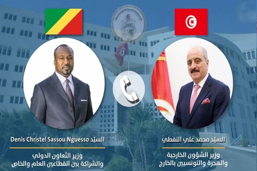 Lors d’un entretien téléphonique, le ministre des Affaires étrangères, Mohamed Ali Nafti, et son homologue congolais, Denis Christel Sassou Nguesso, ont convenu, vendredi 4 juillet 2025, de renforcer la coopération entre leurs pays, en l’occurrence la Tunisie et le Congo, particulièrement dans les domaines économique et commercial, lors d’un entretien téléphonique.