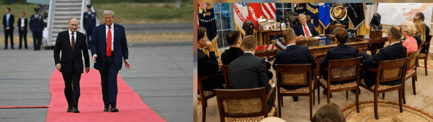 Sur les deux premières images, on voit Trump assis à son bureau, avec les représentants européens face à lui, comme des élèves devant un professeur dans le bureau ovale. Cette mise en scène apparaît très humiliante pour l’Union européenne dans son ensemble, d’autant plus qu’elle a été diffusée intentionnellement. Elle relégitime ainsi l’Europe à une position secondaire, loin de son rôle principal dans le dossier ukrainien.