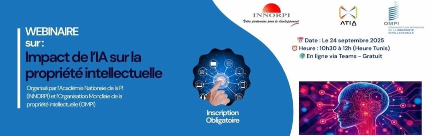 L’Institut national de la normalisation et de la propriété industrielle ( INN précise qu’il organise ce Webinaire gratuit en collaboration avec l’Organisation Mondiale de la Propriété Intellectuelle (OMPI) et l’Association Tunisienne de l’Intelligence artificielle (ATIA).