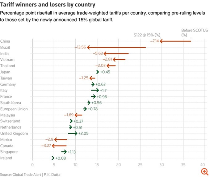 Leconomiste Maghrebin > Blog > Economie > Economie internationale > Les gagnants et les perdants du nouveau tarif douanier général de 15 % de Trump