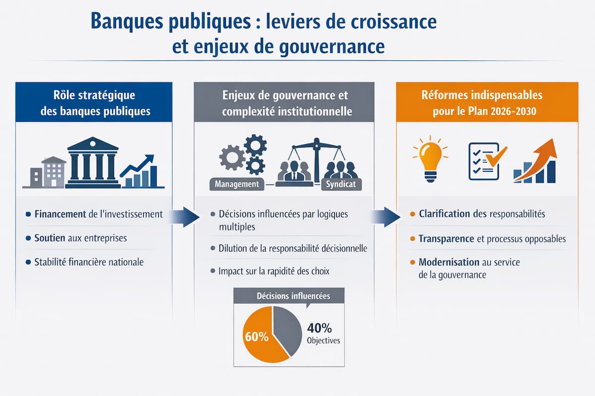 Dans une économie où l’État conserve un rôle structurant, les banques publiques constituent un maillon stratégique de la transmission des politiques économiques. Elles ne sont pas seulement des intermédiaires financiers ; elles participent à l’orientation sectorielle du crédit, à la stabilisation du système financier et à la fluidité de l’investissement productif. Leur gouvernance influe directement sur la crédibilité macroéconomique du pays.