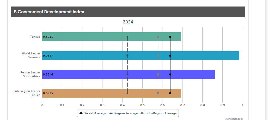 Il convient de rappeler que la Tunisie domine l’Afrique du Nord (1ère), l’Afrique (3ème) et se classe 87ème mondial (EGDI 0,6935) selon l’ONU 2024.