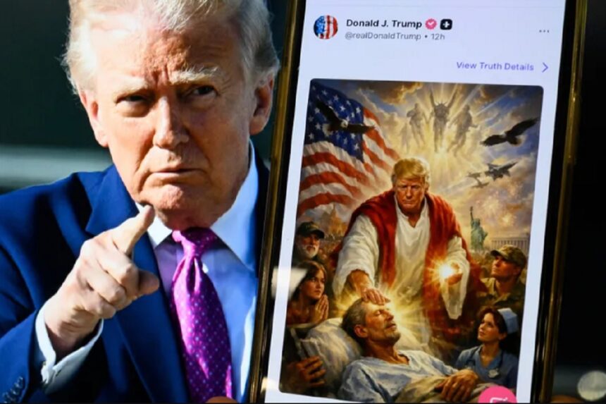 - La publication par Trump de son image incarnant Jésus en train de guérir un malade.