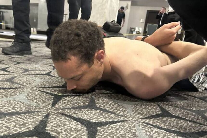 Aussitôt, Donald Trump exhiba la photo d’un homme torse nu allongé le ventre sur la moquette du couloir du Hilton, les mains menottées dans le dos. Avant d’annoncer sur Truth Social que les services secrets et les forces de l’ordre avaient fait un travail « fantastique » et appréhendé le tireur qu’il a qualifié de « loup solitaire ».