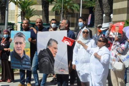 Des députés de Qalb Tounes observent un sit-in devant le pôle judiciaire