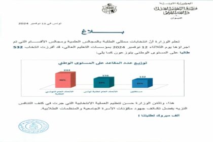 L'UGTE a remporté 244 sièges lors des élections des représentants étudiants aux…